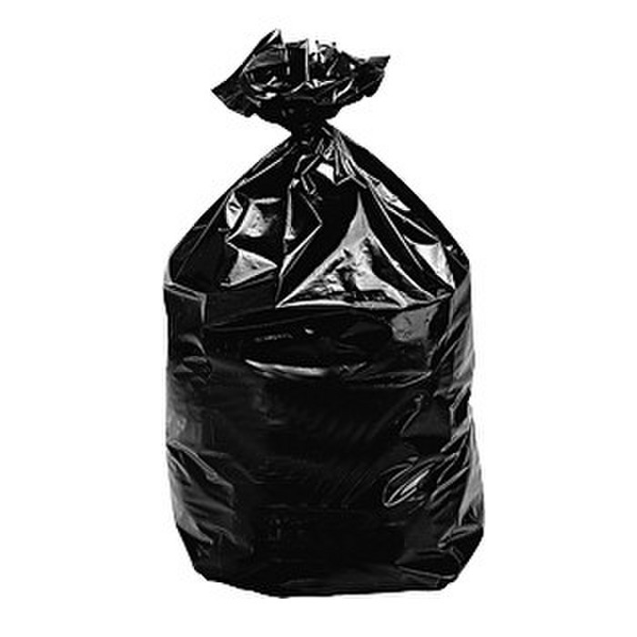 Sac à déchet 110L noir PEBD Standard. Dimensions 700X1050. Soudure à plat. Matière 100% recyclée et recyclable.